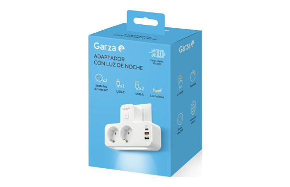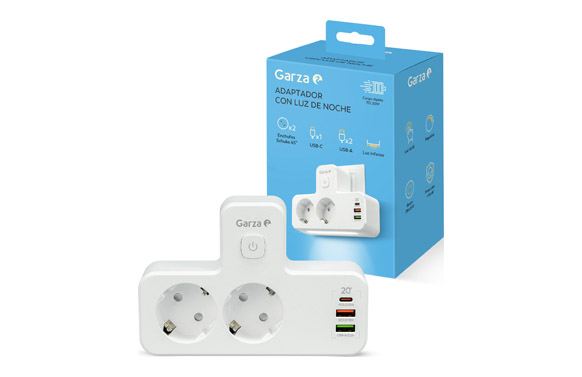 Ladron con int. 2 tomas + 2usb a + usb c 20w blanco con luz nocturna