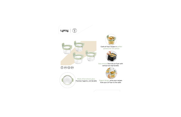 Mini vasos de vidrio para freidora de aire. Asas de silicona platino antideslizantes, Para freidoras de aire de 5L en adelante, Apto tanto para freidora de aire, horno, microondas, nevera y lavavajillas.Utiliza siempre guantes protectores o manoplas para evitar completamente el riesgo de quemaduras.